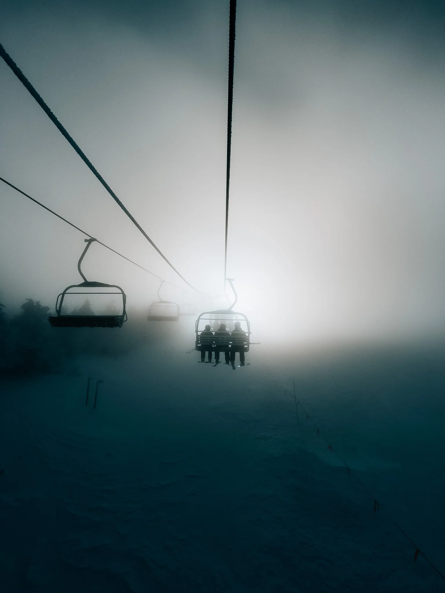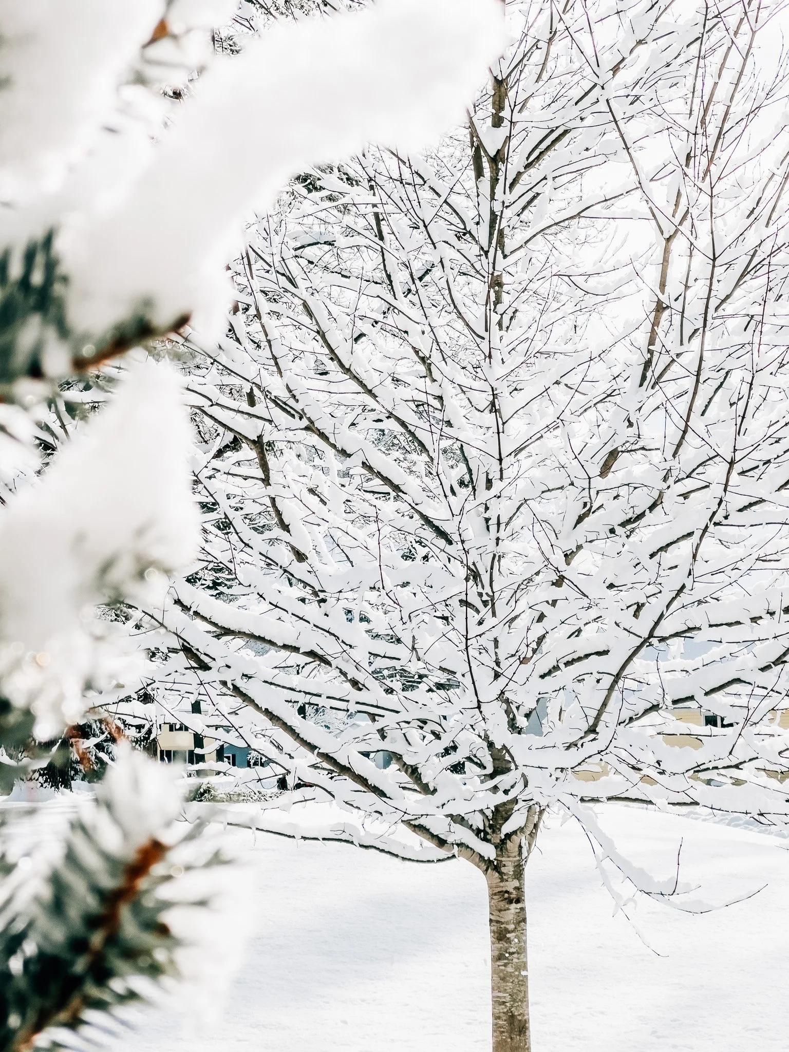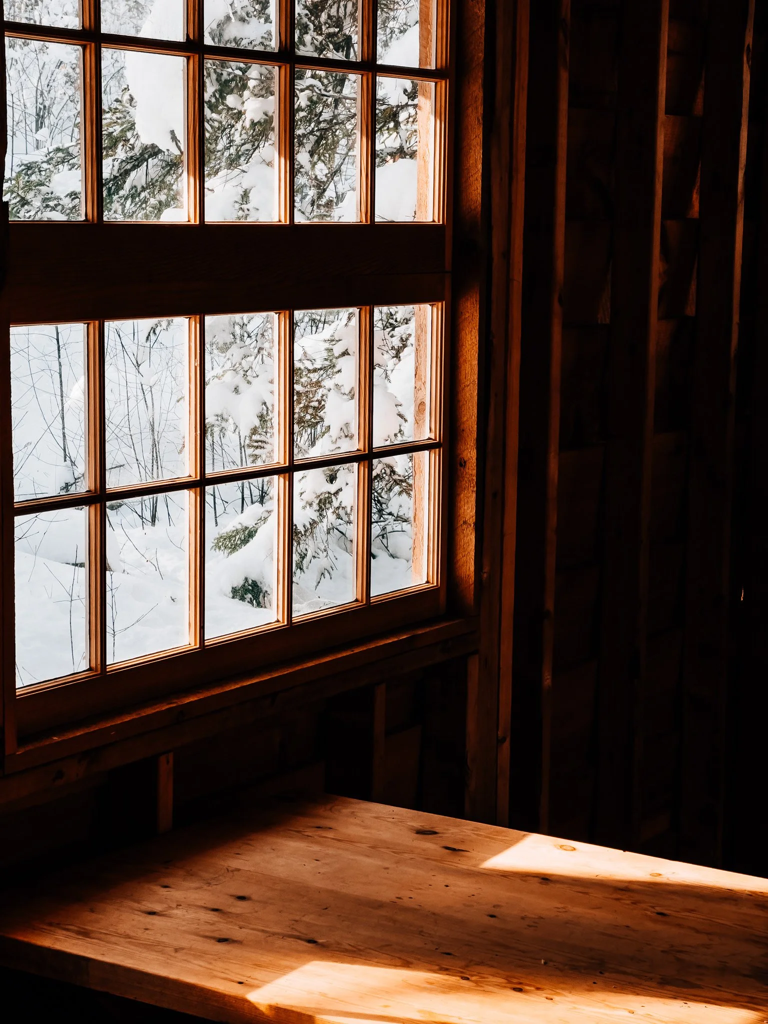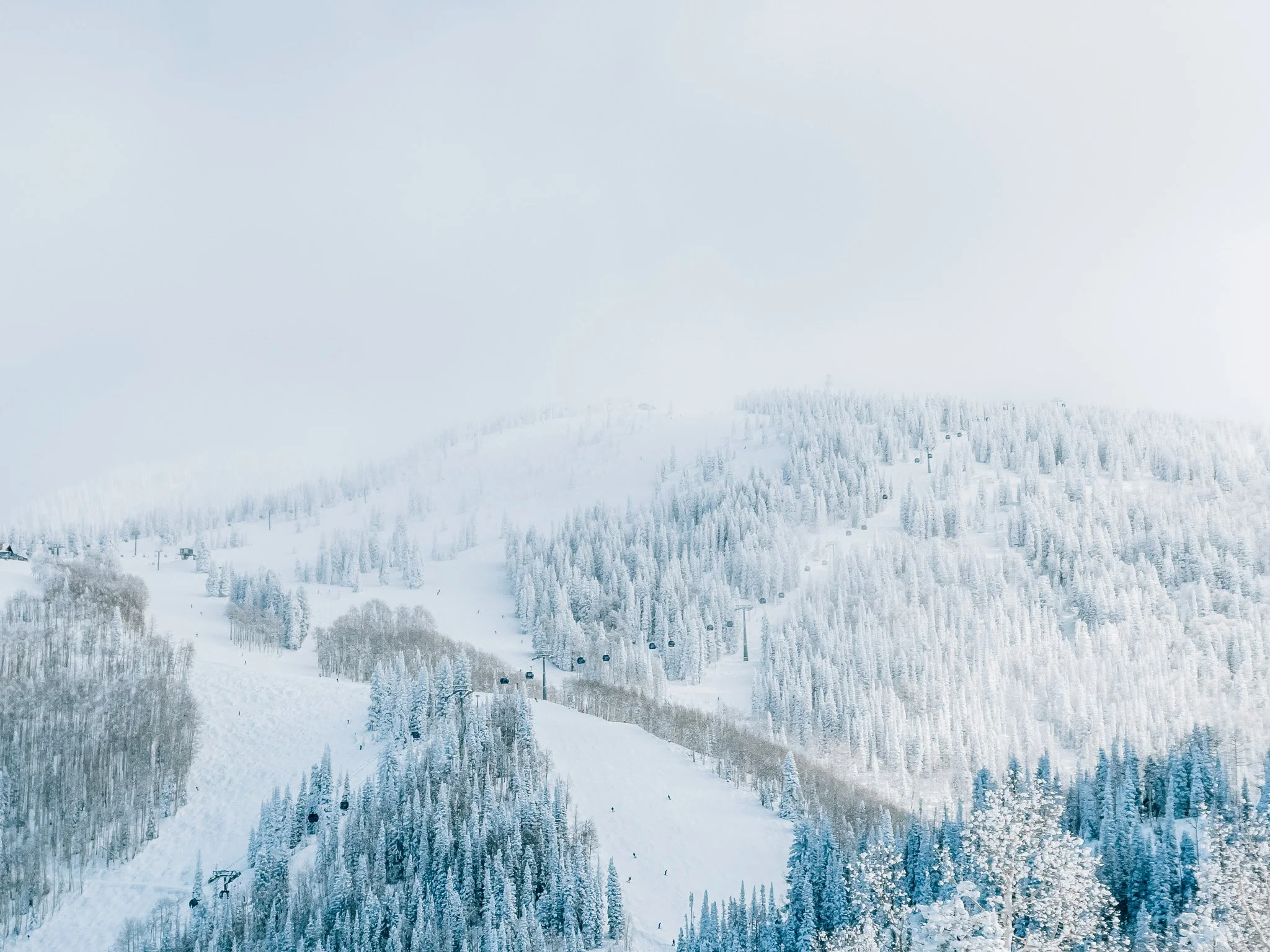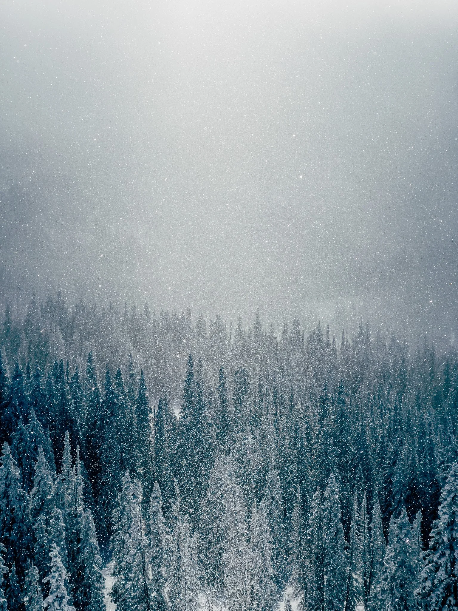 As the storm cleared, I stood on the summit and looked back toward the forested hills behind the resort. Pine trees coated in fresh snow, flakes swirling through the air, rising and falling with the wind. The sun filtered through just enough to make everything sparkle. It was pure magic.